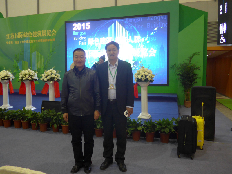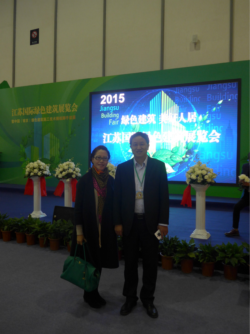 翌日,協(xié)會組織參會人員參加了江蘇國際綠色建筑展覽會,圖為李總、孫總在參觀中與劉能文會長的合影。
